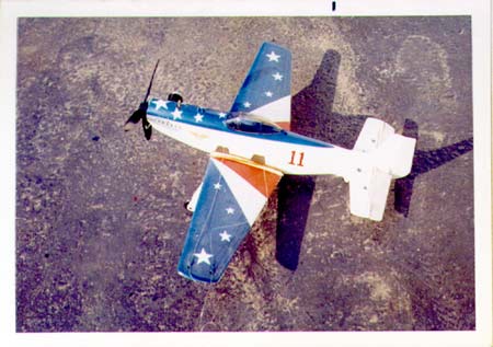 Here's a closer look at the Cox P-51 Spirit of America. It was a nice flying plane. The majority of Cox plastic planes I've flown have been fairly good performers. Photo by my brother was taken in my parent's driveway.