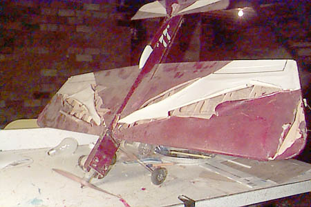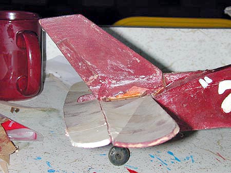 the warped rudder, stab and elevator. I used hot glue and epoxy for